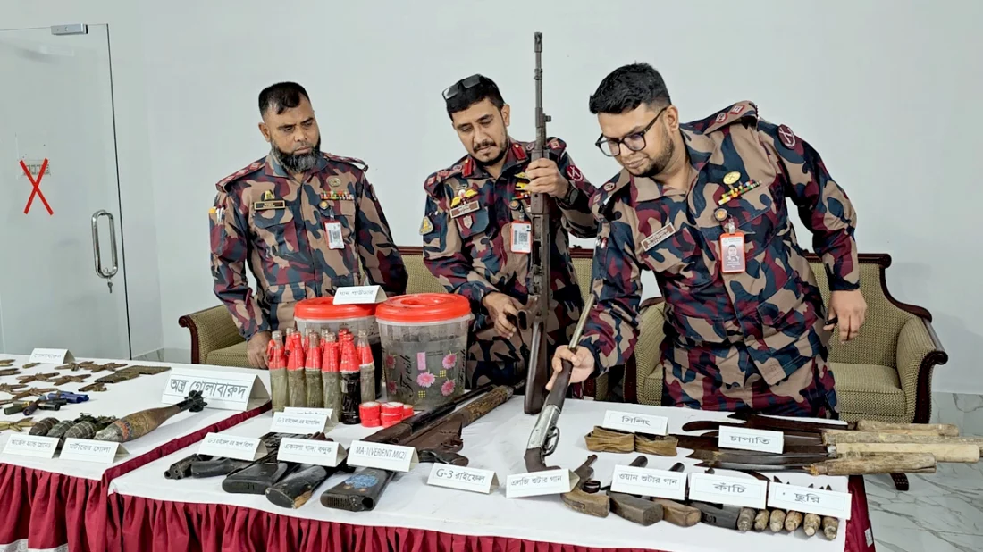 টেকনাফের গহীন পাহাড়ে বিজিবির সঙ্গে গোলাগুলি, বিপুল পরিমাণ অস্ত্র-গোলাবারুদ উদ্ধার