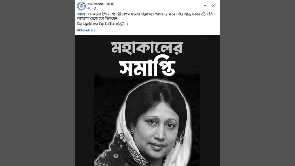 বিএনপি চেয়ারপারসন বেগম খালেদা জিয়া মারা গেছেন