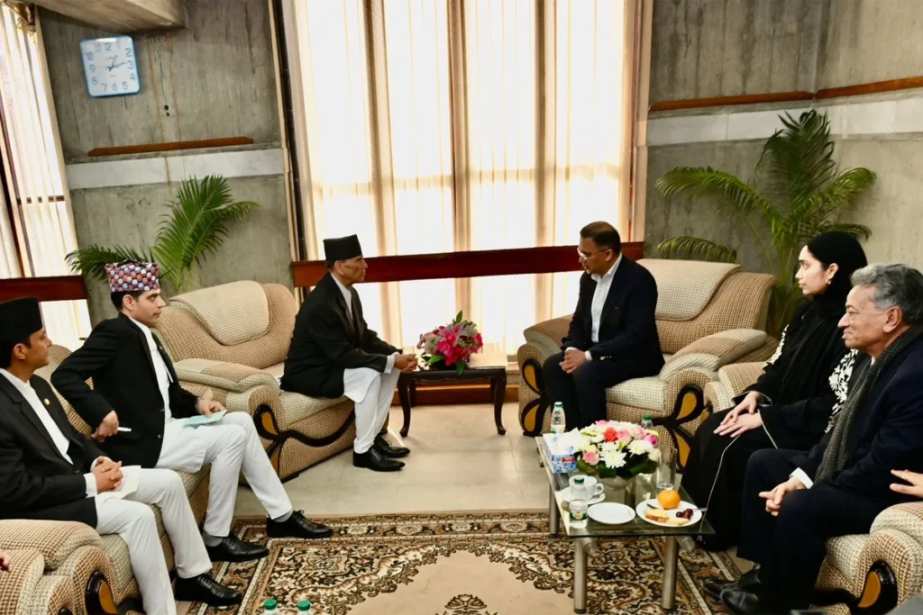 বিএনপির ভারপ্রাপ্ত চেয়ারম্যান তারেক রহমানের সঙ্গে সৌজন্য সাক্ষাৎ করেছেন নেপালের পররাষ্ট্রমন্ত্রী বালা নন্দা শর্মা এবং ভুটানের পররাষ্ট্র ও বৈদেশিক বাণিজ্যমন্ত্রী লিয়নপো ডি. এন. ধুংগেল।