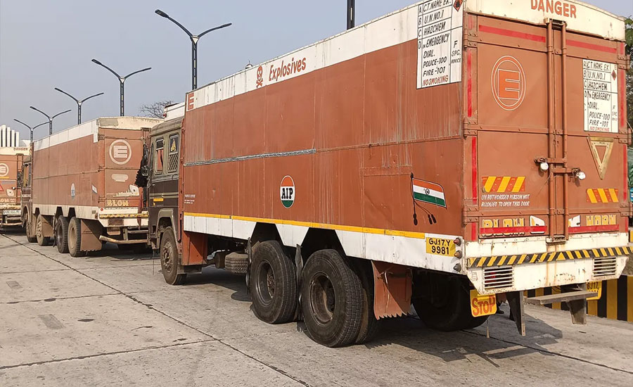 ভারত থেকে বিপুল পরিমাণ বিস্ফোরক দ্রব্য বহনকারী আটটি ট্রাক বেনাপোল স্থলবন্দর দিয়ে বাংলাদেশে প্রবেশ করেছে। মধ্যপাড়া গ্রানাইট মাইনিং প্রকল্পের জন্য আমদানি করা এই চালানকে ঘিরে বন্দর এলাকায় সর্বোচ্চ নিরাপত্তা ব্যবস্থা নেওয়া হয়েছে।