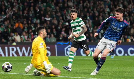 উয়েফা চ্যাম্পিয়ন্স লিগের কোয়ার্টার ফাইনালের প্রথম লেগে শেষ মুহূর্তের গোলে স্পোর্টিং লিসবনকে ১-০ ব্যবধানে হারিয়েছে আর্সেনাল।