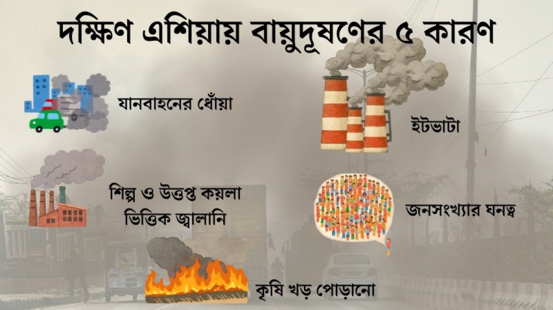 শিকাগো বিশ্ববিদ্যালয়ের এনার্জি পলিসি ইনস্টিটিউট দুই বছর আগের একটি প্রতিবেদনে দেখিয়েছে যে বিশ্বের সবচেয়ে দূষিত দেশগুলো দক্ষিণ এশিয়ায় অবস্থিত—যার মধ্যে বাংলাদেশ, ভারত, নেপাল ও পাকিস্তান রয়েছে, যেখানে বৈশ্বিক জনসংখ্যার প্রায় ২৩ শতাংশ বসবাস করে। এই এলাকার বায়ুদূষণের মাত্রা মানুষের গড় আয়ুর ওপর মারাত্মক প্রভাব ফেলে।