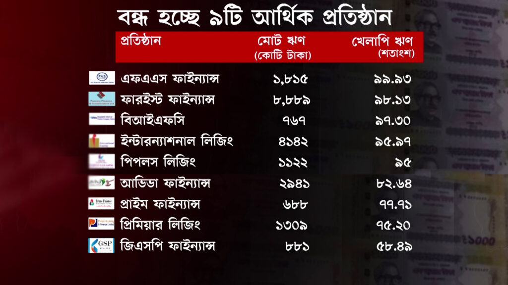 যে ৯টি আর্থিক প্রতিষ্ঠান বন্ধ হচ্ছে
