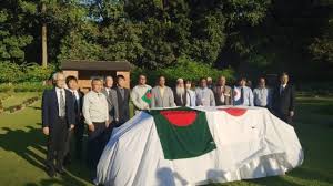 চট্টগ্রাম ওয়ার সিমেট্রি থেকে উত্তোলন, জাপানে পাঠানোর আগে সেনাবাহিনীর সামরিক মর্যাদায় গার্ড অব অনার।