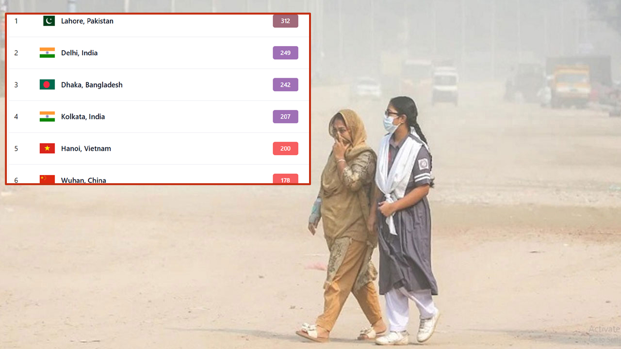 বিশ্বের দূষিত বায়ুর শহরের তালিকায় আজ শীর্ষে রয়েছে পাকিস্তানের লাহোর, বায়ুমান সূচকে যা স্কোর ৩১২। তালিকায় তৃতীয় অবস্থানে রয়েছে বাংলাদেশের রাজধানী ঢাকা। এদিন সকালে ঢাকার এয়ার কোয়ালিটি ইনডেক্স (বায়ুর মান সূচক) স্কোর ছিল ২৪২, যা খুবই ‘অস্বাস্থ্যকর’ হিসেবে বিবেচিত।